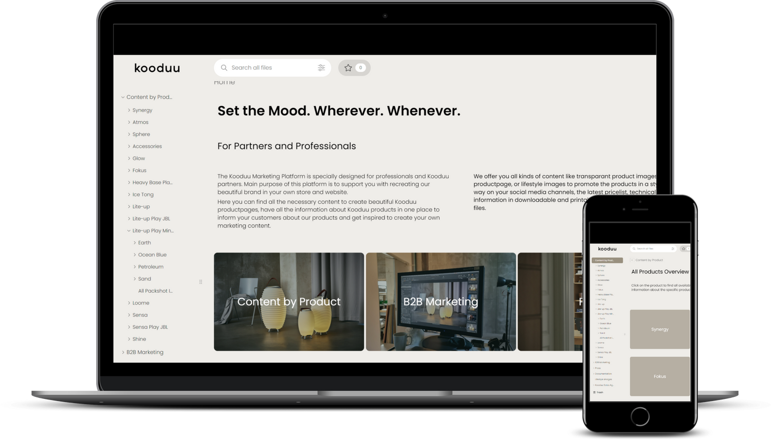 Download all available content directly from the Kooduu Marketing Platform. Click on the Download Content button and you will be redirected to kooduu.kontainer.com
